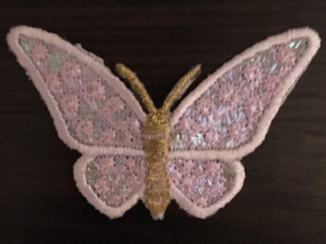 Вышивка апликация бабочка 7смх5см светло-розовый