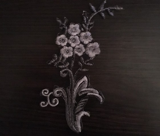 Вышивка апликация цветок большой 5смх14см серый [ 1 ]