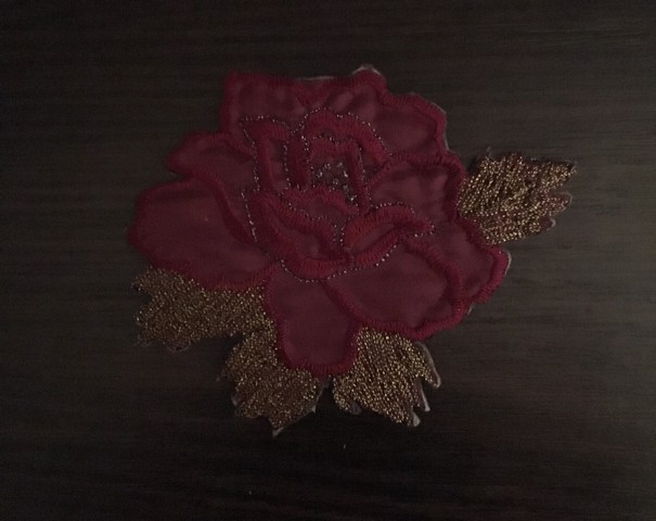 Вышивка апликация цветок большой 9смх8см бордо [ 1 ]