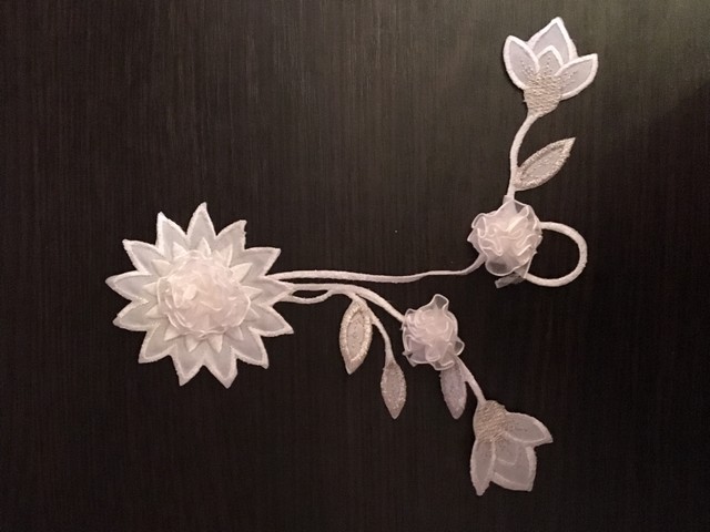 Вышивка цветок большой пришивной 15смх15см белый [ 1 ]