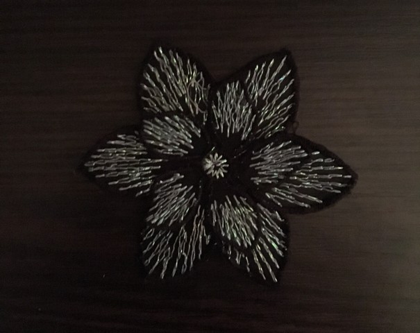 Вышивка цветок большой пришивной 7,5смх7,5см черно-зеленый [ 1 ]