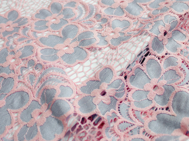 Стрейчевый гипюр отличаются наличием в составе разного количества эластана или лайкры, что придает материалу эластичность и способность тянуться..