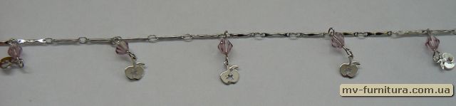 Браслет цепочка серебро №36 пластмасса розовый 5 яблок 21см [ 1 ]