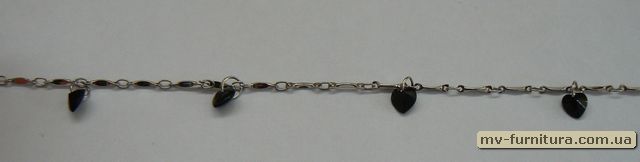 »  »  »  » Браслет цепочка серебро №43 пластмасса черный 4 сердца 21см