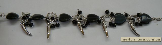 »  »  »  » Браслет цепочка серебро №54 пластмасса черный сердце/дуга 19см