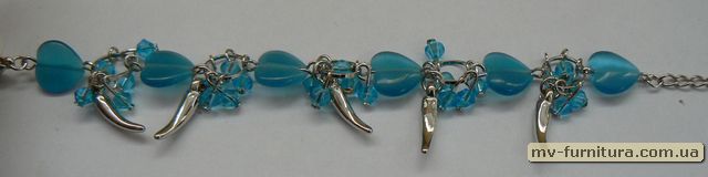 »  »  »  » Браслет цепочка серебро №54 пластмасса голубой сердце/дуга 19см