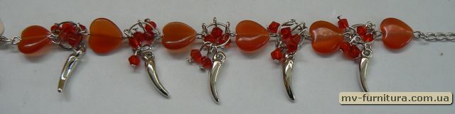 »  »  »  » Браслет цепочка серебро №54 пластмасса красный сердце/дуга 19см