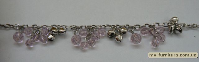 Браслет цепочка серебро №55 пластмасса розовый гроздь 19см [ 1 ]