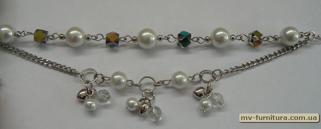 »  »  »  » Браслет цепочка серебро №65 пластмасса жемчуг металл белый сердцеМ (10мм) 20см