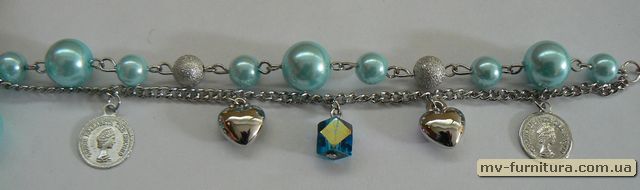 »  »  »  » Браслет цепочка серебро №74 пластмасса жемчуг металл голубой монетка 20см