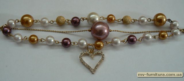 »  »  »  » Браслет цепочка золото №79 пластмасса жемчуг камень цветной 3нитки/сердце 20см