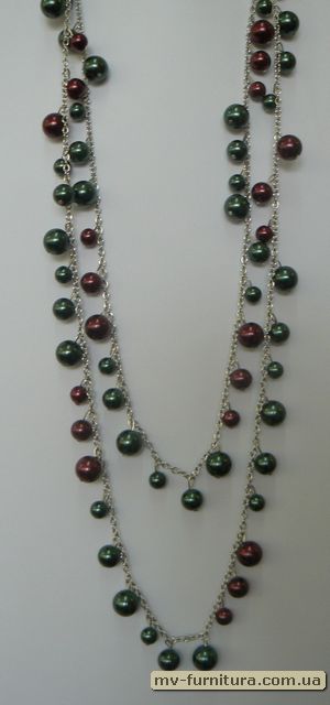 Бусы цепи серебро №13 жемчуг зеленый+бордо 2 in 1 (12мм/10мм/8мм) бзастежки (70см) [ 1 ]