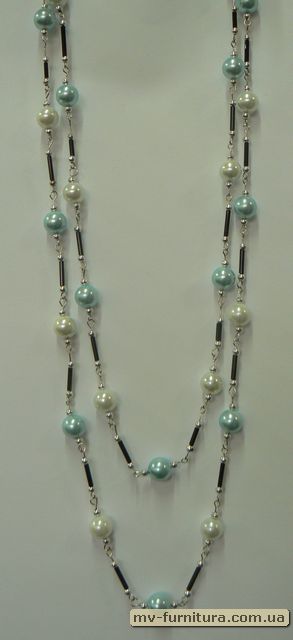 »  »  »  » Бусы цепи серебро №14 жемчуг белый+бирюза 2 in 1 (10мм) черная палочка бзастежки (73см)
