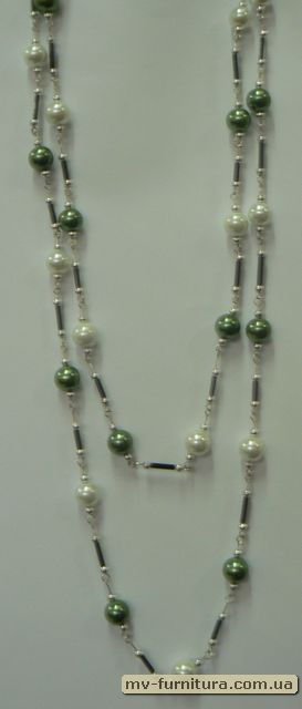 »  »  »  » Бусы цепи серебро №14 жемчуг белый+зеленый 2 in 1 (10мм) черная палочка бзастежки (73см)