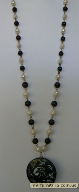 »  »  »  » Бусы цепи серебро №145 жемчуг белый/черный пластина застежка (38см)