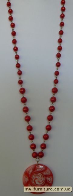 »  »  »  » Бусы цепи серебро №145 жемчуг красный пластина застежка (38см)