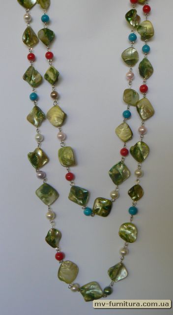 »  »  »  » Бусы цепи серебро №19 жемчуг 2 in 1 зеленый ракушка б/застежки (70см)