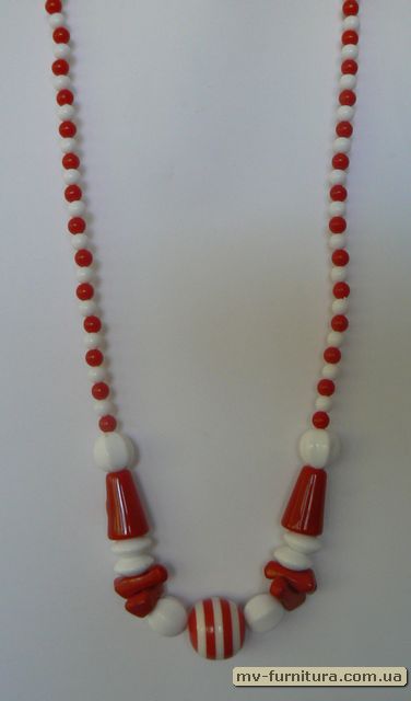 »  »  »  » Бусы пластик №34 красный+белый шарики застежка (30см)