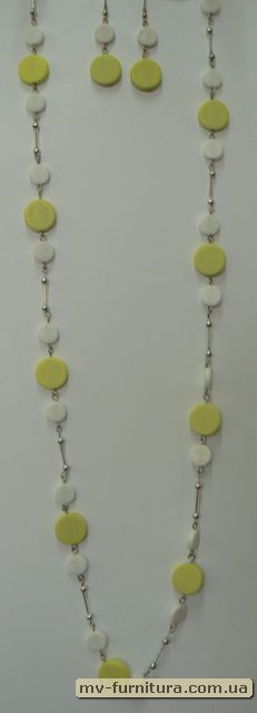 »  »  »  » Бусы+серьги цепочка серебро №1 пластмасса желто-белый таблетка бзастежки (45см)