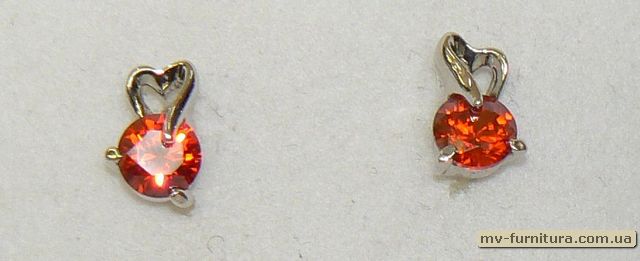 Гвоздик класика серебро камень красный сердце на камне [ ]
