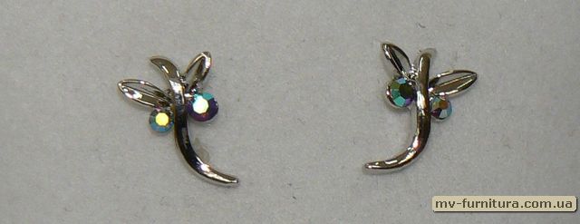 Гвоздик класика серебро камень зеленый стрекоза [ ]