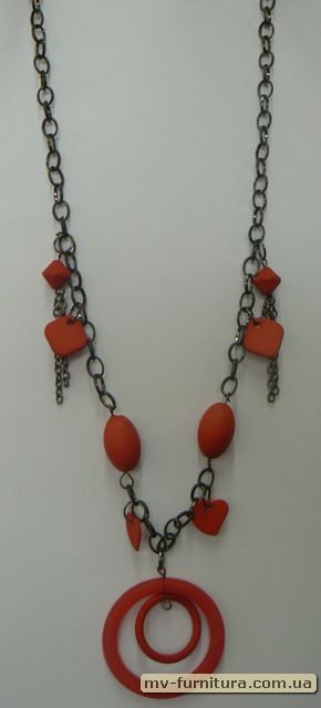 »  »  »  » Колье цепочка блекникель №14 пластмасса красный "Болгария" (31см)