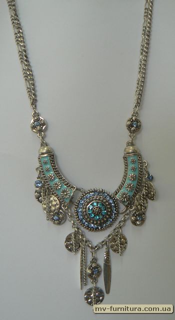 Колье цепочка серебро №18 металл+камень голубой этник (24см) [ ]