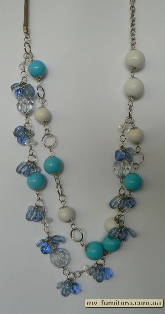 »  »  »  » Колье цепочка серебро №21 пластмасса+стекло голубой (33см)