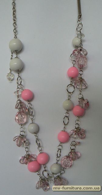 »  »  »  » Колье цепочка серебро №21 пластмасса+стекло розовый (33см)