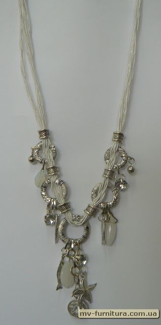 »  »  »  » Колье веревка №16 металл+камень+пластмасса белый море (26см)