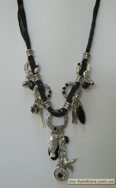 »  »  »  » Колье веревка №16 металл+камень+пластмасса черный море (26см)