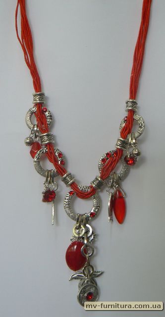 »  »  »  » Колье веревка №16 металл+камень+пластмасса красный море (26см)