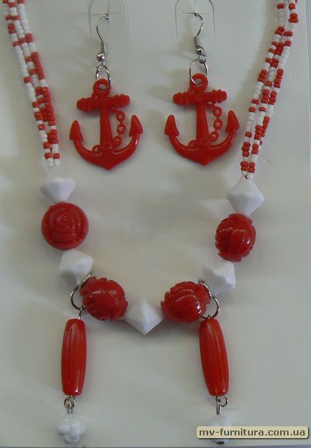 »  »  »  » Колье+серьги бисер №5 пластмасса красный фигурки (30см)