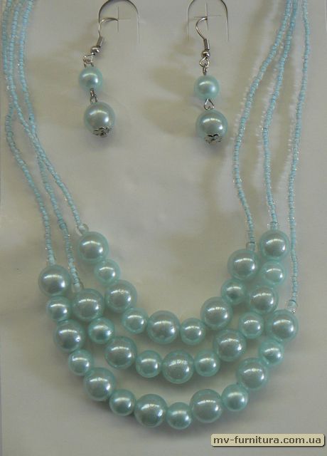 »  »  »  » Колье+серьги бисер №6 жемчуг голубой (30см)