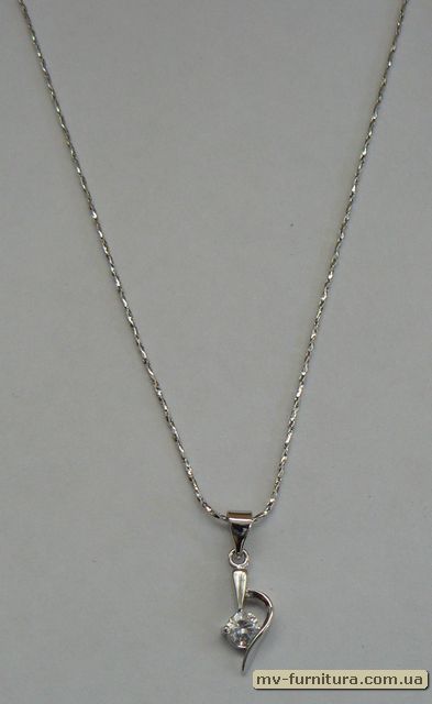 • Кулон цепочка №13 серебро камень белый узор  (20см)