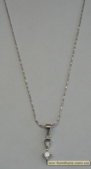 »  »  »  » Кулон цепочка №14 серебро камень белый сердце/стрела (20см)