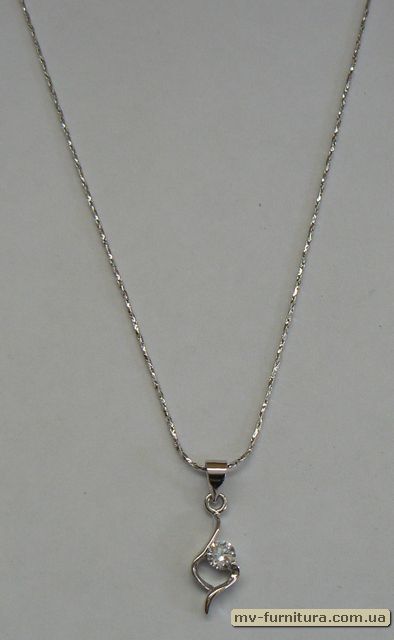 »  »  »  » Кулон цепочка №16 серебро камень белый 2волны/камень (20см)