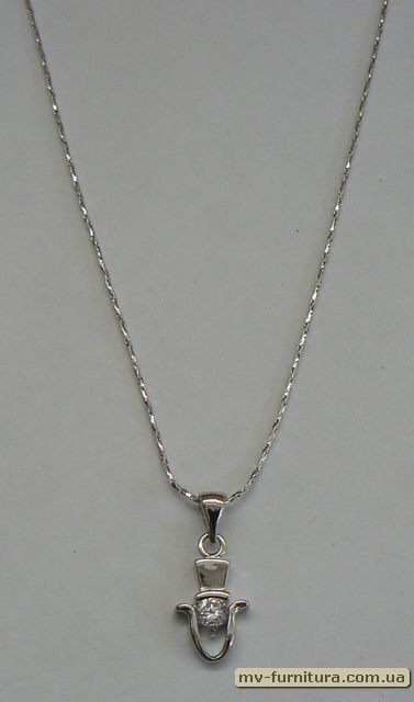 »  »  »  » Кулон цепочка №23 серебро камень белый шляпка (20см)