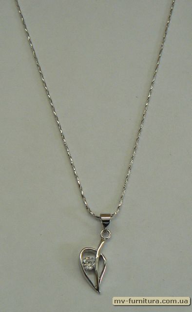 »  »  »  » Кулон цепочка №24 серебро камень белый листик (20см)