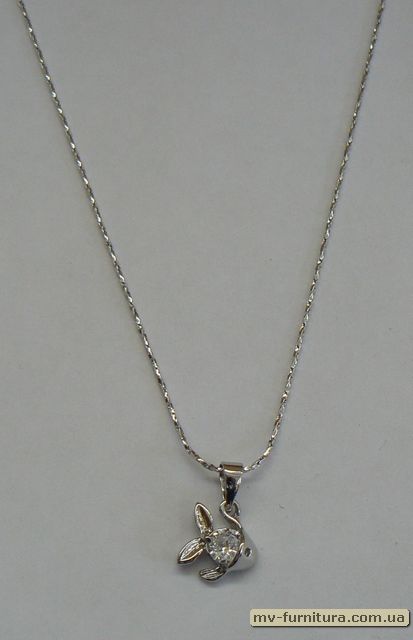 »  »  »  » Кулон цепочка №35 серебро камень белый рыбка (20см)