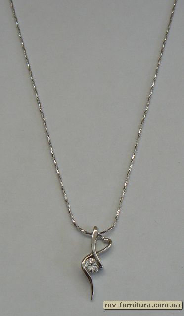 »  »  »  » Кулон цепочка №38 серебро камень белый сердце/волна (20см)