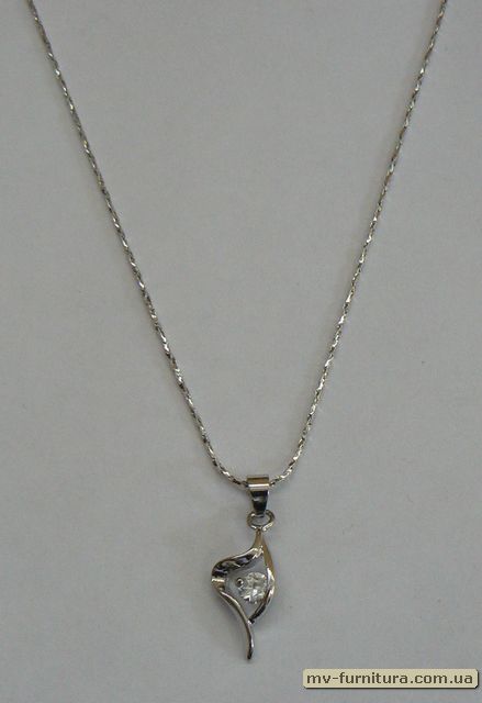 »  »  »  » Кулон цепочка №40 серебро камень белый листик (20см)