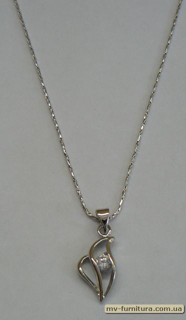 »  »  »  » Кулон цепочка №49 серебро камень белый листик (20см)