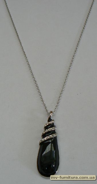 »  »  »  » Кулон цепочка серебро камень эмаль черный капля/3полоски (22см)