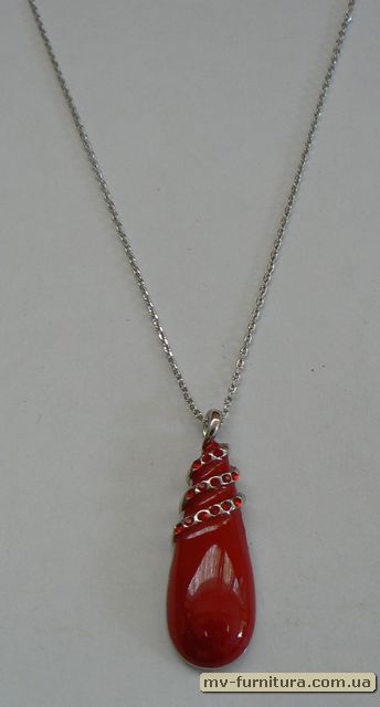 »  »  »  » Кулон цепочка серебро камень эмаль красный капля/3полоски (22см)