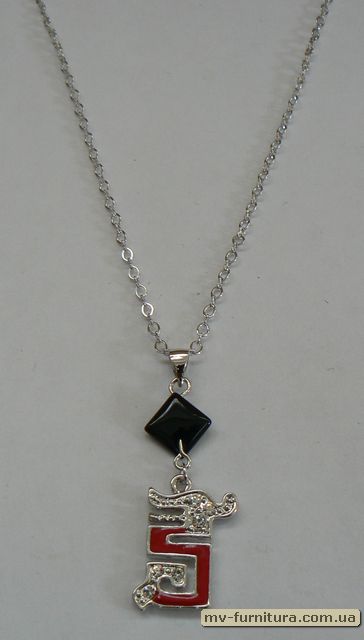 »  »  »  » Кулон цепочка серебро камень эмаль красный ромб/пятерка (22см)