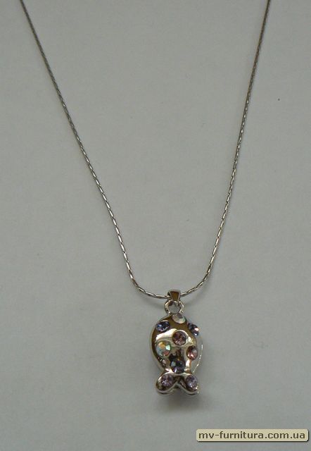 »  »  »  » Кулон цепочка серебро камень фиолетовый каменная рыбка (22см)