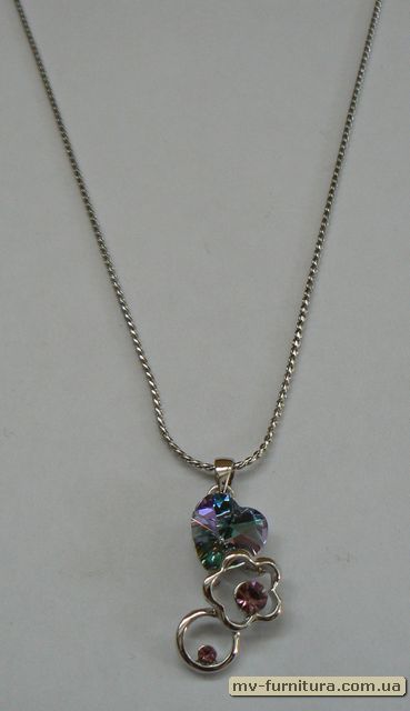 »  »  »  » Кулон цепочка серебро камень фиолетовый сердце/цветок (22см)