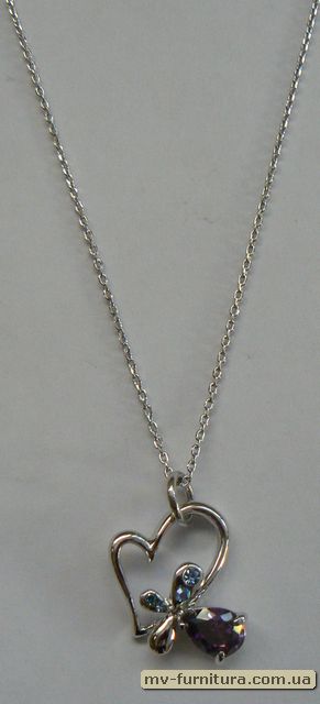 »  »  »  » Кулон цепочка серебро камень фиолетовый сердце/колокольчик (22см)