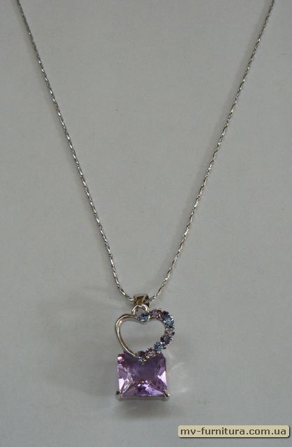 »  »  »  » Кулон цепочка серебро камень фиолетовый сердце/квадрат (22см)